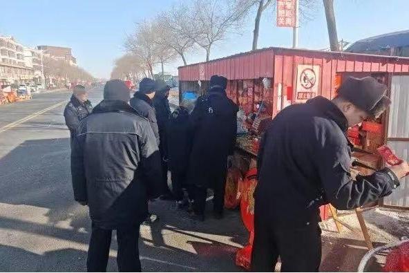 五大連池市公安局聯(lián)合多部門開展年貨大街煙花爆竹安全檢查