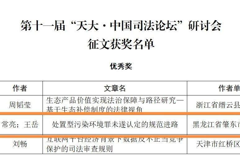 肇東市人民法院1篇論文榮獲第十一屆“天大·中國司法論壇”征文優(yōu)秀獎(jiǎng)