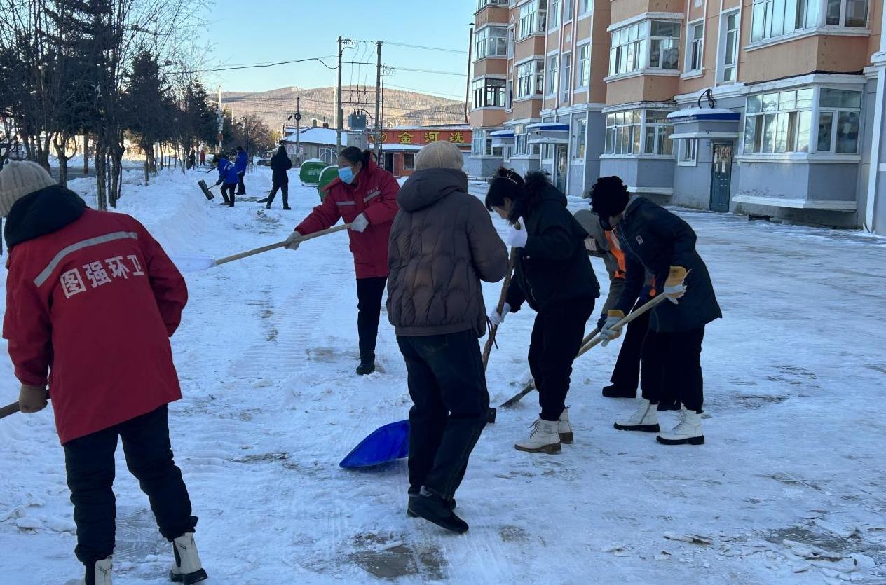 聞雪而動(dòng) 圖強(qiáng)林業(yè)局環(huán)衛(wèi)處清雪保民生