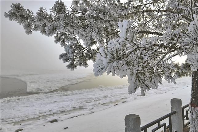 江上跑冰排 江岸現(xiàn)霧凇