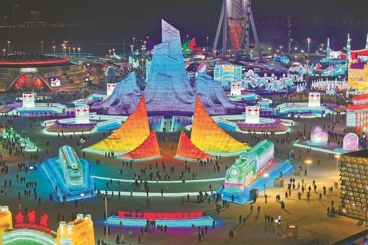 冰雪大世界主塔“冰燈啟夢”封頂