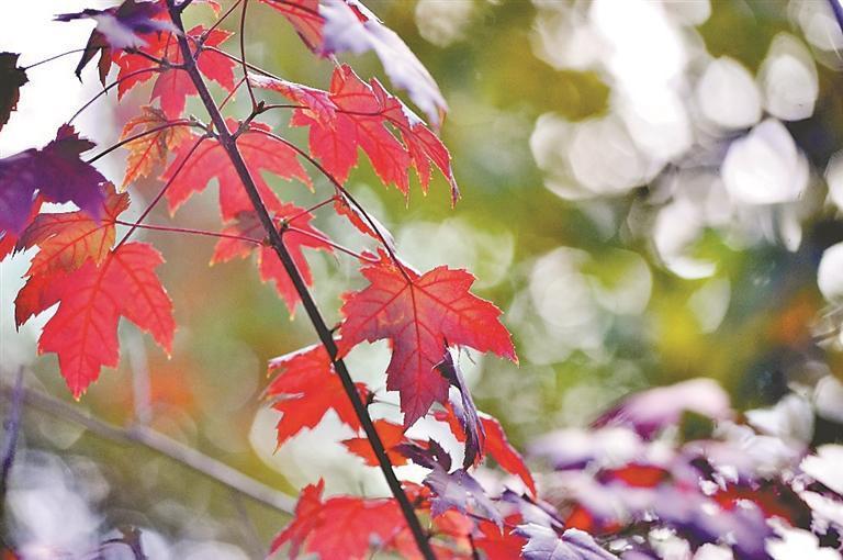 8日,寒露,二十四節(jié)氣中的第十七個節(jié)氣。在一些公園里,楓樹的葉子陸續(xù)變?yōu)榧t色,為秋季冰城再添了一道美景。火紅的楓葉吸引人們駐足觀賞拍照。