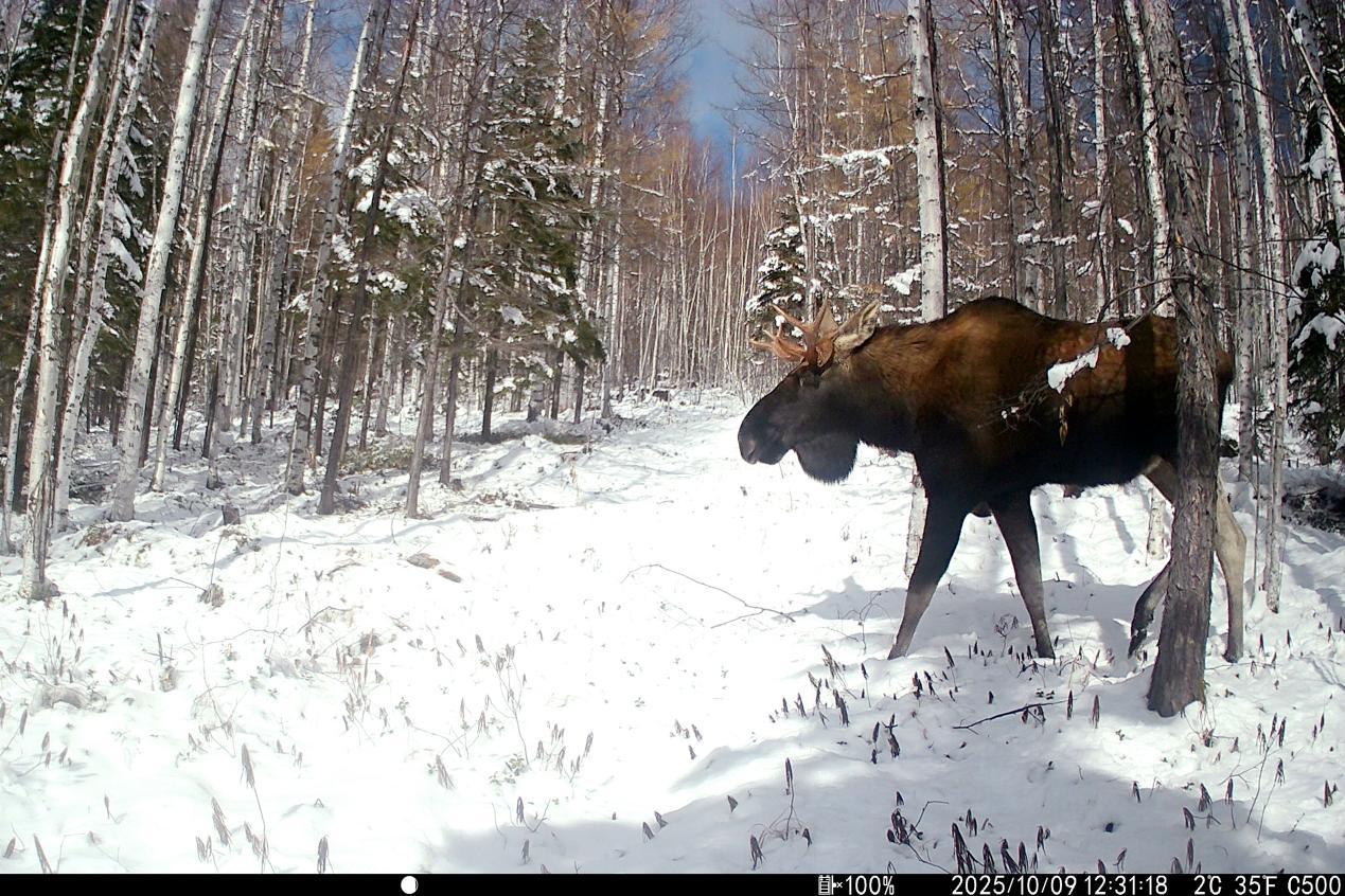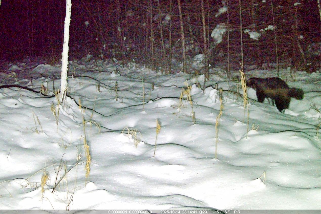 項(xiàng)目實(shí)施中,工作人員克服地形復(fù)雜、嚴(yán)寒天氣等挑戰(zhàn),深入森林公園腹地完成15條冬季樣線調(diào)查,并同步開展97臺(tái)紅外相機(jī)的維護(hù)與回收工作,累計(jì)獲取了大量珍貴野生動(dòng)物影像資料及活動(dòng)數(shù)據(jù)。監(jiān)測(cè)范圍內(nèi),駝鹿、原麝、貂熊、紫貂、猞猁、棕熊、馬鹿、花尾榛雞等國家重點(diǎn)保護(hù)野生動(dòng)物相繼現(xiàn)身,更捕捉到原麝覓食、棕熊帶崽等罕見畫面,直觀印證了森林公園內(nèi)棲息地質(zhì)量優(yōu)良、生態(tài)保護(hù)成效顯著。