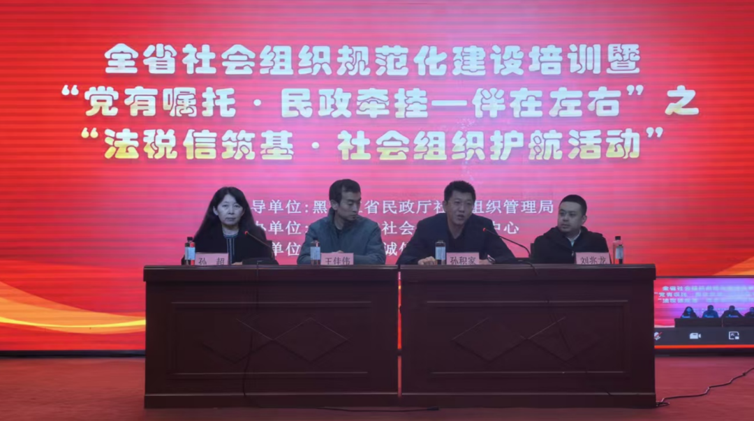 黑龍江經(jīng)濟(jì)網(wǎng)訊(朱麗穎 記者崔冰)為深入貫徹落實(shí)國(guó)家關(guān)于社會(huì)組織管理的系列政策精神,強(qiáng)化依法依規(guī)運(yùn)營(yíng)意識(shí),夯實(shí)財(cái)稅管理基礎(chǔ),塑造誠(chéng)信自律行業(yè)風(fēng)尚,11月28日,由黑龍江省民政廳社會(huì)組織管理局指導(dǎo)、黑龍江省社會(huì)組織服務(wù)中心主辦、黑龍江省誠(chéng)信建設(shè)促進(jìn)會(huì)承辦的“全省社會(huì)組織規(guī)范化建設(shè)培訓(xùn)暨‘黨有囑托·民政牽掛—伴在左右’之法稅信筑基·社會(huì)組織護(hù)航活動(dòng)”在哈爾濱金谷大廈成功舉辦。