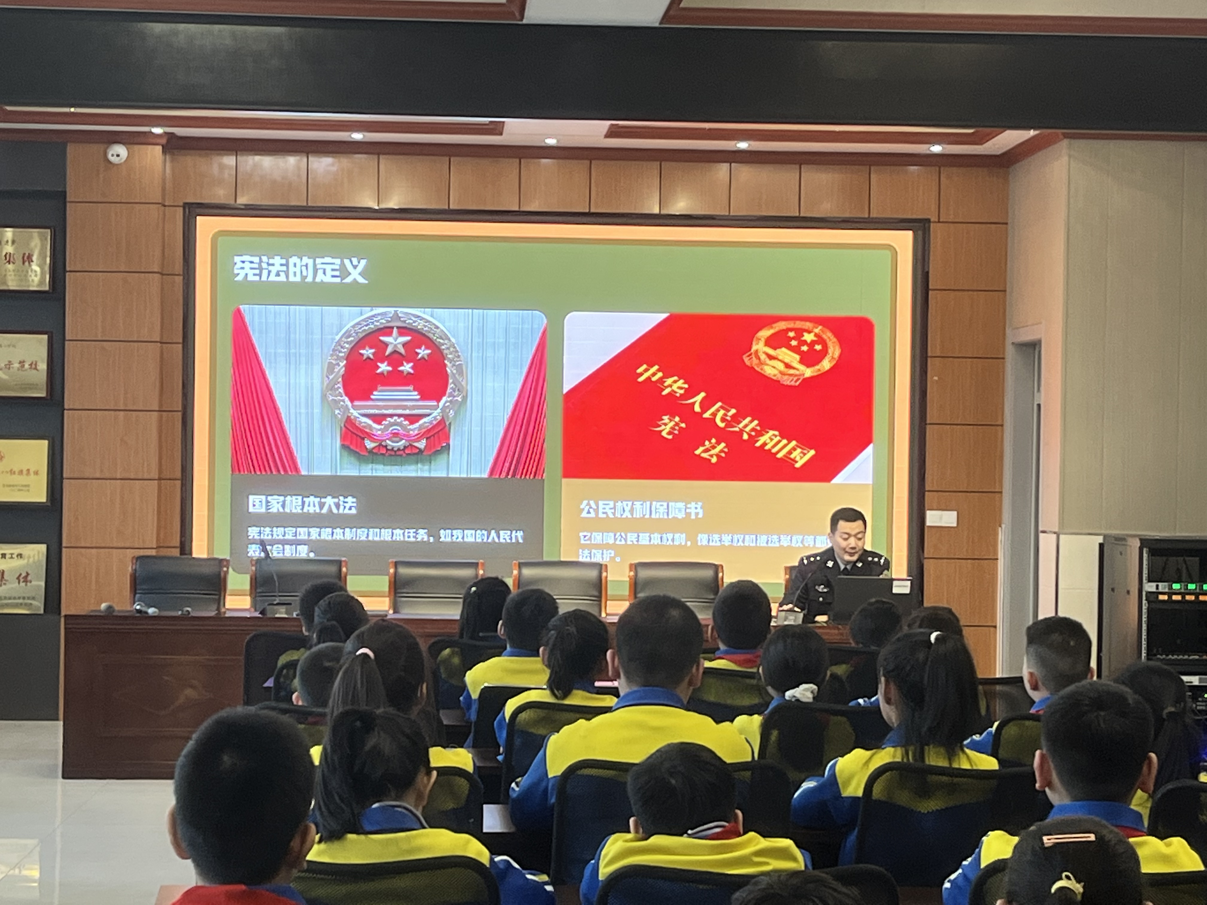 講座中,民警以通俗生動(dòng)的語言,圍繞三大核心內(nèi)容展開宣講:一是憲法基礎(chǔ)認(rèn)知,重點(diǎn)闡釋憲法作為國家根本大法的地位與作用,結(jié)合受教育權(quán)、人身安全保障、遵守校園規(guī)則等小學(xué)生熟悉的生活場(chǎng)景,讓學(xué)生真切感受到憲法并非“遙遠(yuǎn)的法律”,而是與自身息息相關(guān)的行為準(zhǔn)則;二是權(quán)利與義務(wù)對(duì)應(yīng),明確小學(xué)生依法享有的受教育權(quán)、人格尊嚴(yán)不受侵犯等合法權(quán)利,同時(shí)詳細(xì)講解遵守憲法法律、尊敬師長(zhǎng)、維護(hù)公共秩序等必須履行的義務(wù),引導(dǎo)學(xué)生樹立“權(quán)利有邊界,義務(wù)須履行”的法治觀念;三是校園法治安全,針對(duì)校園欺凌、交通安全、網(wǎng)絡(luò)安全、防范陌生人侵害等問題,民警結(jié)合憲法及相關(guān)法律對(duì)未成年人的保護(hù)規(guī)定,傳授簡(jiǎn)單實(shí)用的自我保護(hù)方法和求助途徑,著重強(qiáng)調(diào)遇到危險(xiǎn)時(shí)可及時(shí)撥打110報(bào)警電話或告知老師、家長(zhǎng)。