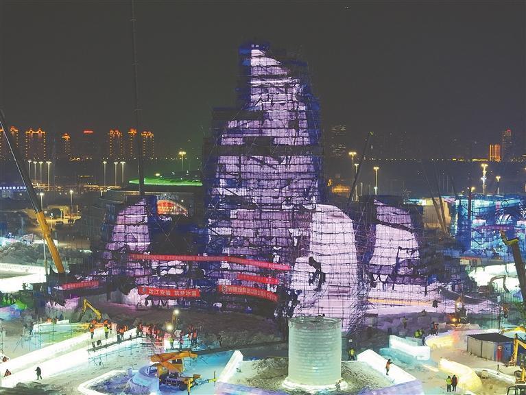 作為目前全球規(guī)模最大的冰雪主題園區(qū),本屆哈爾濱冰雪大世界總用冰量、用雪量雙雙刷新紀錄。施工現場,上萬名來自龍江安裝集團的建設者在低溫中晝夜奮戰(zhàn),18個冰建工區(qū)、5個雪建工區(qū)同步推進,園區(qū)建設已完成70%。