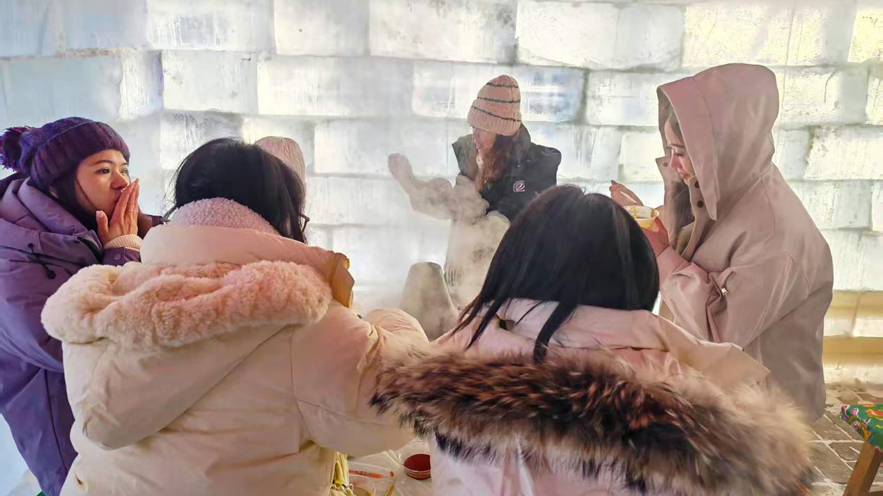 最受游客追捧的冰屋火鍋體驗(yàn),今年在味覺與感官雙重享受上再升級(jí)。冰屋內(nèi)溫度保持在零下30℃左右,卻絲毫不影響食客們的熱情,80個(gè)餐位時(shí)常座無(wú)虛席。林場(chǎng)精選大興安嶺本地鮮切羊肉、林下鮮蔬等特色食材,搭配地道東北銅鍋炭火,讓游客在極寒環(huán)境中品味熱辣鮮香,“冰火兩重天”的極致體驗(yàn)直擊味蕾與身心。