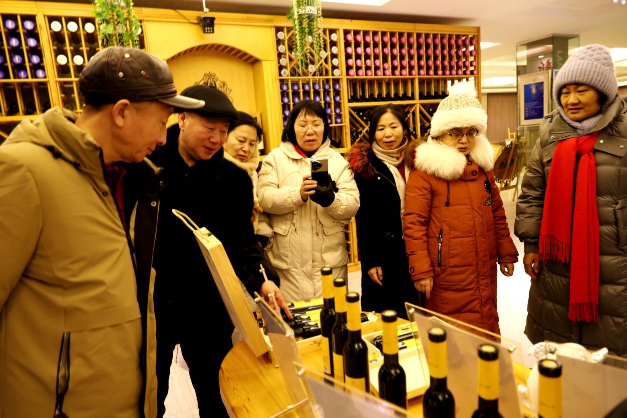 黑龍江省詩(shī)詞協(xié)會(huì)采風(fēng)團(tuán)成員在北極冰藍(lán)莓酒莊了解酒文化和酒品(王力 攝)