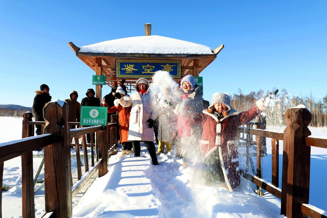 黑龍江省詩(shī)詞協(xié)會(huì)采風(fēng)團(tuán)成員在雙妃湖親身感受冰雪文化和驛站文化(王力 攝)