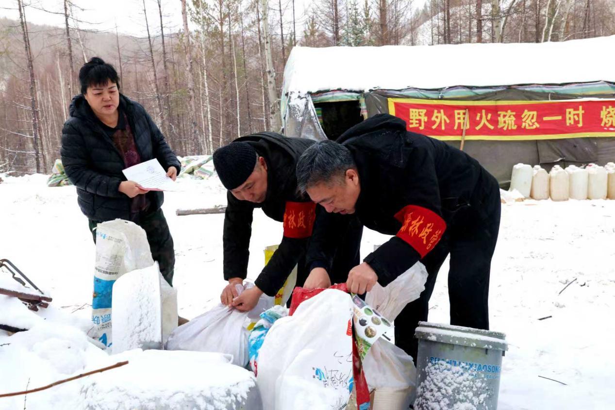 阿木爾林業(yè)局督導(dǎo)檢查組突擊檢查野外作業(yè)點(diǎn)凍貨存放點(diǎn),檢查是否有野生動(dòng)物制品(王力 攝)