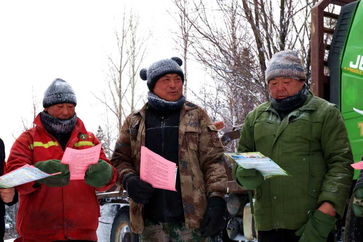 阿木爾林業(yè)局一線職工認(rèn)真閱讀保護(hù)野生動(dòng)物宣傳單(王力 攝)