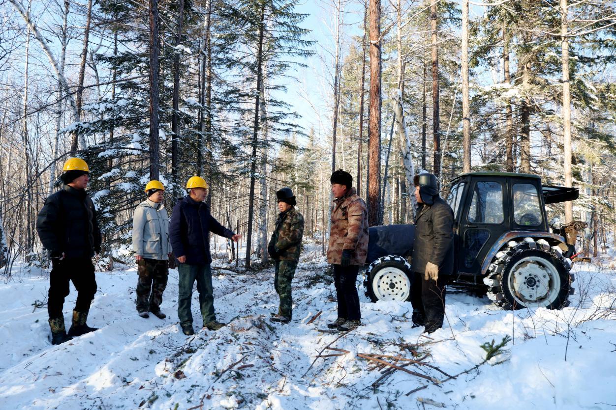 阿木爾林業(yè)局生態(tài)修復(fù)管理科工作人員深入到作業(yè)場(chǎng)地,講解安全生產(chǎn)相關(guān)注意事項(xiàng)(王力 攝)