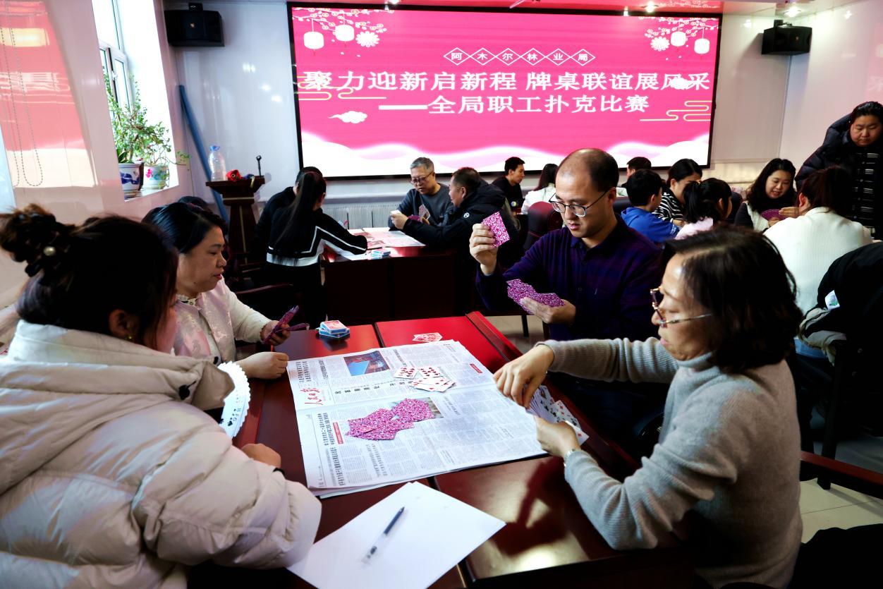 黑龍江經(jīng)濟(jì)網(wǎng)訊(王力)歡聲笑語(yǔ)辭舊歲,凝心聚力迎新春。為豐富全局職工精神文化生活,營(yíng)造歡樂(lè)祥和的節(jié)日氛圍,近日,阿木爾林業(yè)局工會(huì)以“聚力迎新啟新程,牌桌聯(lián)誼展風(fēng)采”為主題,精心舉辦了職工撲克比賽,來(lái)自局機(jī)關(guān)各部門、各基層單位的34支代表隊(duì)近70名職工齊聚一堂,以牌會(huì)友、切磋技藝,在輕松愉悅的氛圍中喜迎新春佳節(jié)的到來(lái)。