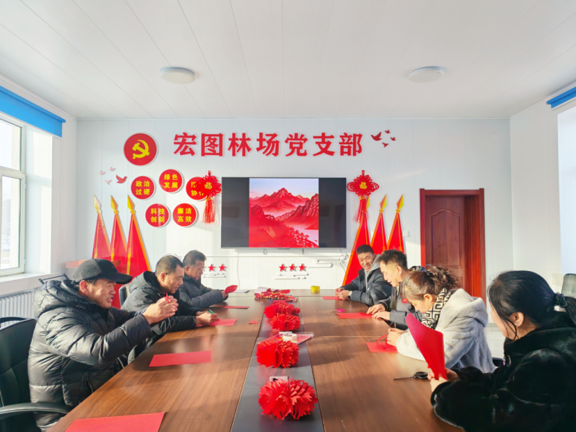 宏圖林場職工正在剪紙(李婷 攝)