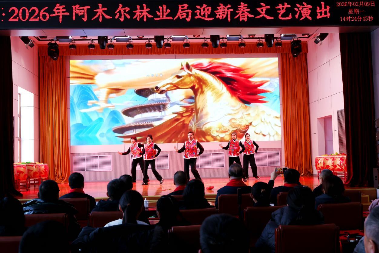 演出伊始,林業(yè)局黨委負責人王飛發(fā)表熱情洋溢的致辭,向全體職工及家屬致以新春祝福與誠摯問候。伴隨著躍馬揚鞭、震撼人心的鼓舞《賽馬》,整場演出正式拉開帷幕。 歌曲獨唱、聯(lián)唱飽含深情,《我從草原來》《越往北越美》《逐夢前行》等曲目,唱出林區(qū)人質(zhì)樸赤誠的家國情懷,抒發(fā)熱愛故土、勇毅擔當?shù)恼鎿辞楦小?/p>
