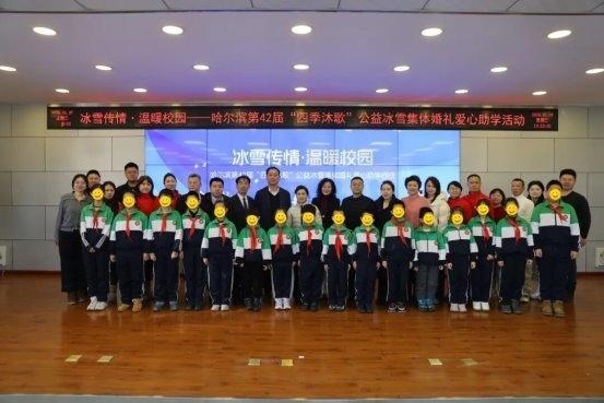 冰雪傳情·溫暖校園——哈爾濱第42屆“四季沐歌”公益冰雪集體婚禮愛心助學行動...